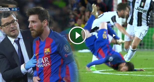 تعرض الأرجنتيني ليونيل ميسي نجم برشلونة الإسباني، لإصابة في الوجه بعد سقوطه على أرضية الملعب، جراء تدخل عنيف من ميراليم بيانيتش وسط ميدان يوفنتوس الإيطالى، في اللقاء الناري الذي يجمع الفريقين مساء اليوم الأربعاء 19 أبريل، برسم منافسات ربع نهائي دوري أبطال أوروبا.